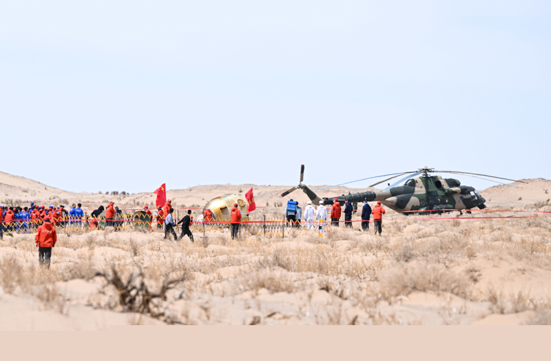 神舟十九號(hào)載人飛船返回艙在東風(fēng)著陸場(chǎng)成功著陸(新華社)
