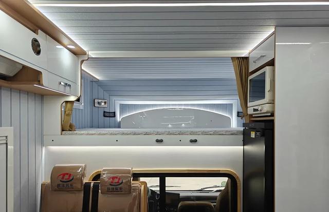途佳這款星空2號迎來了微調版本的布局,這款布局更為適合一家4口人,或者是2胎家庭用車。要想更舒適的用車,2人夫妻更合適,額頭床可以作為儲物箱使用。這款房車的布局其實也比較常規,駕駛室頂部額頭床,中部4人對卡座,中后置廚房和衛生間,車尾是一張橫置雙人床。簡單和樸實。這款車的內飾也進行了一定的調整,看起來更為明快一些,加上車內分布均勻的燈光系統日昇配資,住在車內很舒服。