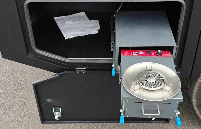 車外的配置方面,常規的市電220V充電口,加水口,放水口等等都是標配。車尾的貫通行李艙接近一個方正的柱體形狀,地板純平設計,用于收納大件行李。儲物艙下方是一個抽拉式柴油灶。